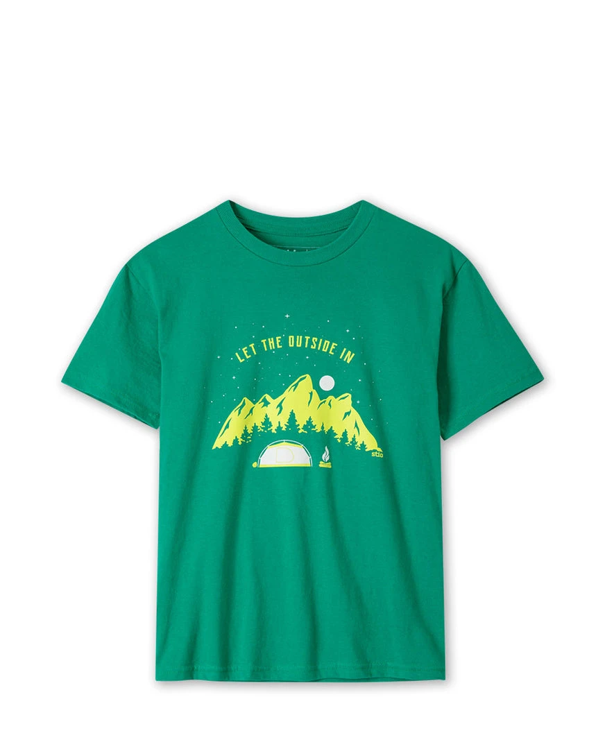 A soft kids’ tee featuring a comfy campsite nestled beneath the Grand Teton.