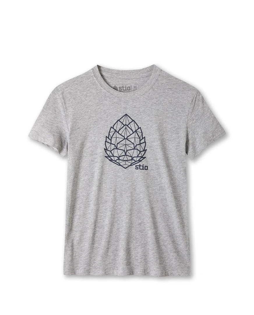 Stio’s logo is a whitebark pinecone, an important cog in the greater Yellowstone ecosystem of which we live. Custom geometric design printed on a comfortable cotton/poly tee.