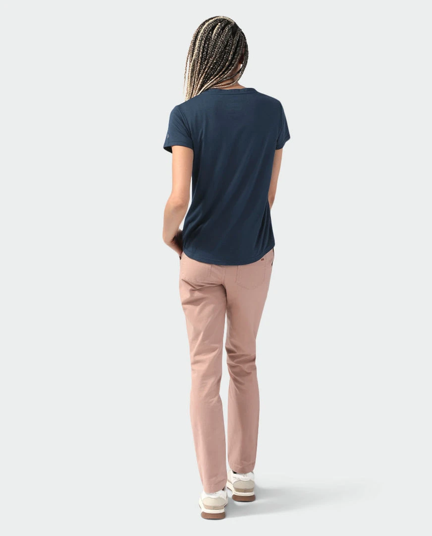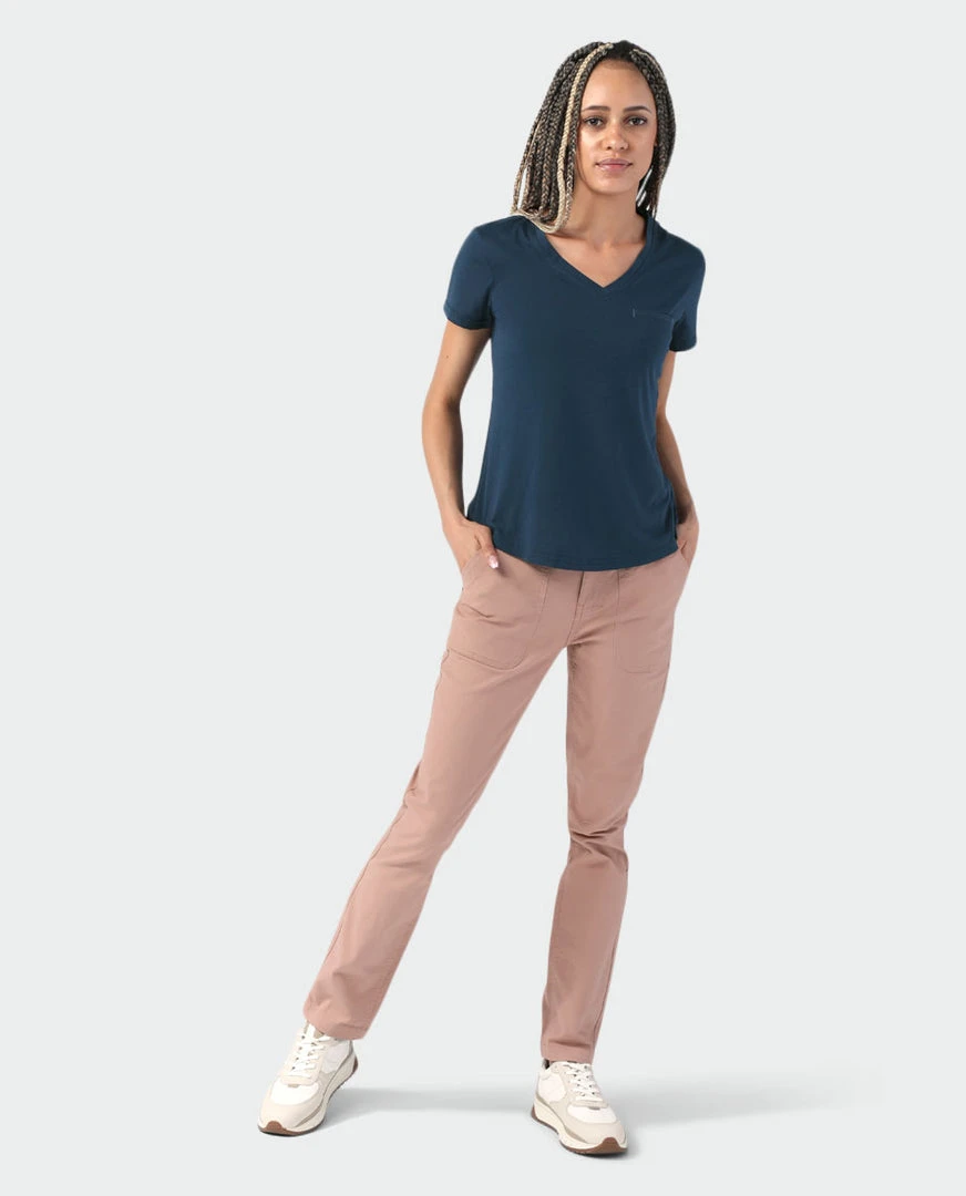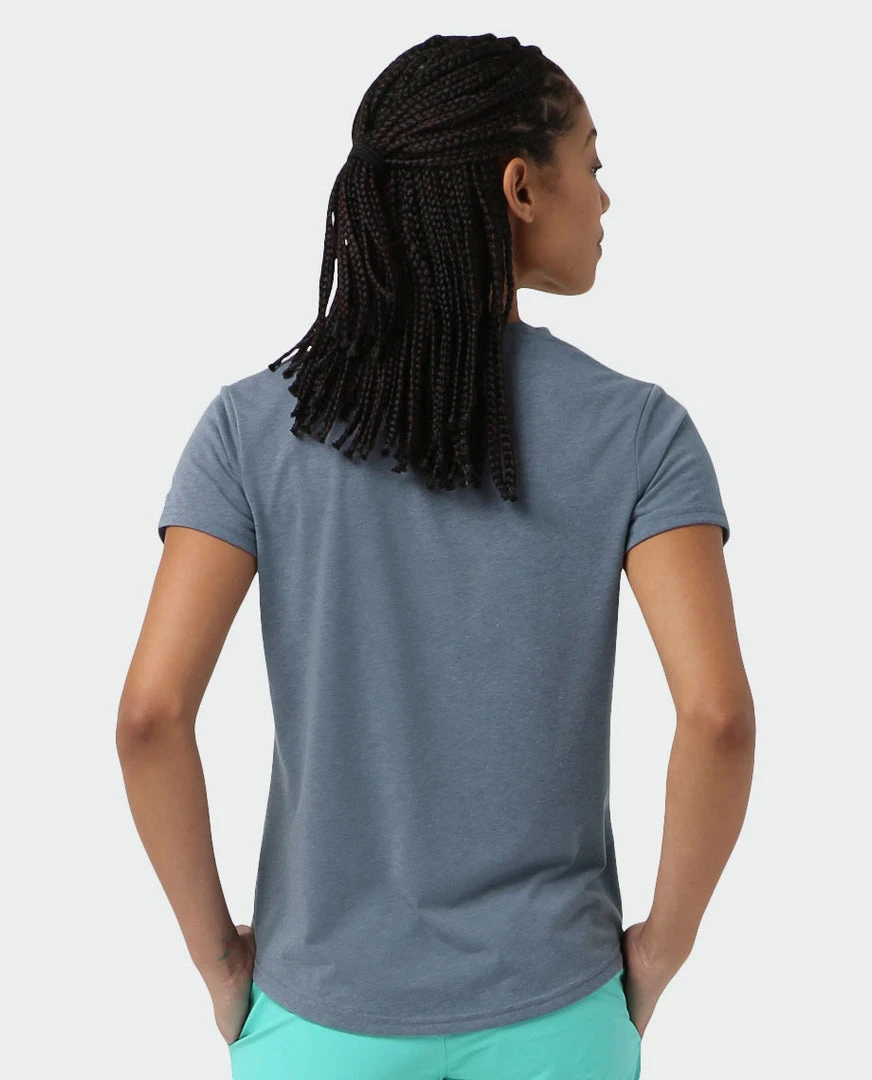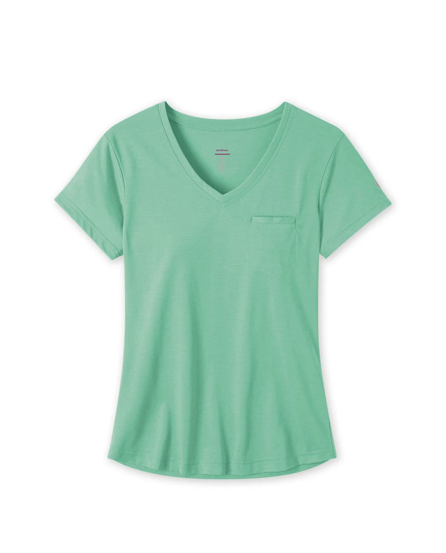 Sleek yet soft drirelease® fabric dries quickly and a moderate V-neck offers a feminine fit, making this top a power play for the daily motion of mountain life.
