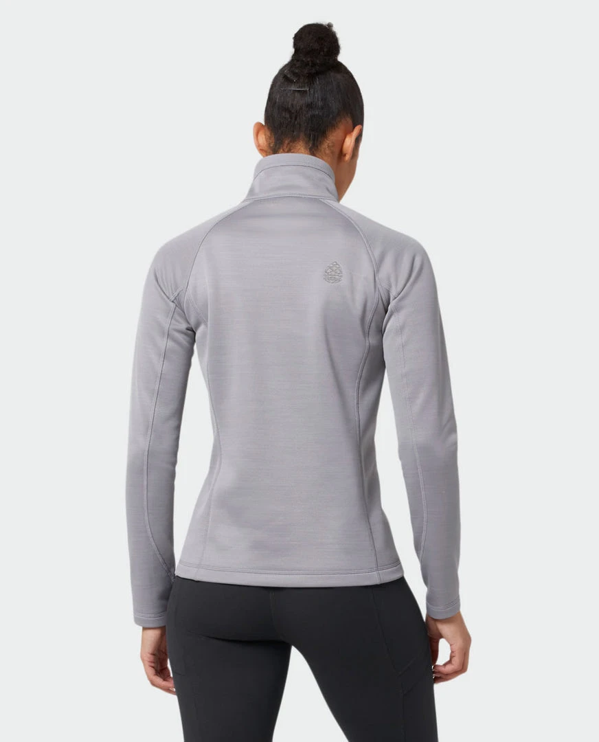 A technical, performance fleece midlayer with a wicking finish and smooth, heathered face.