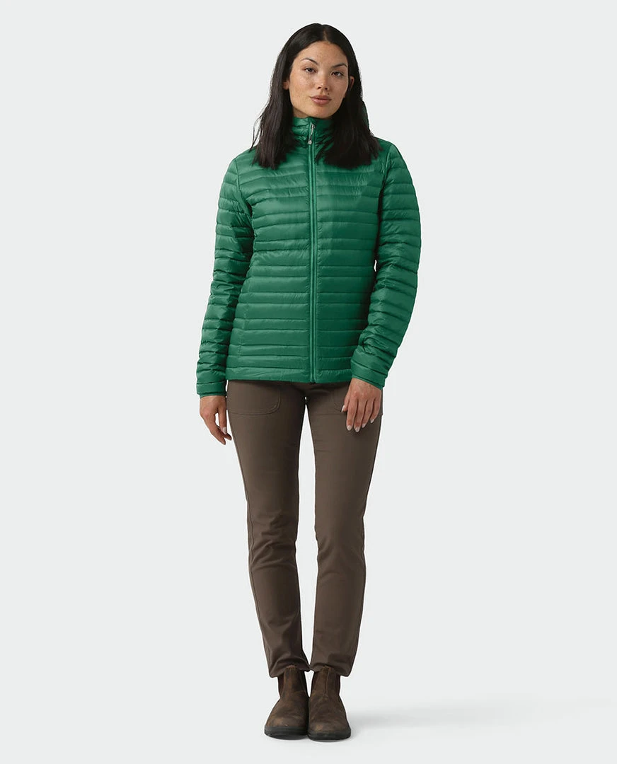 Flattering feminine shape combined with packable, layerable, and certified responsible HyperDRY™ down to warm up any outdoor escape.