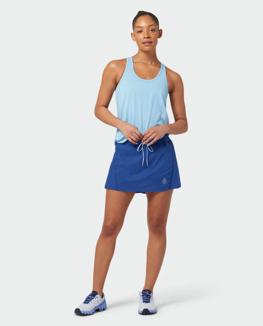 A mountain evolution of the tennis skirt silhouette, with light, airy Meridian™ nylon, offers free-range flexibility for stretching, striding or stopping at the store.